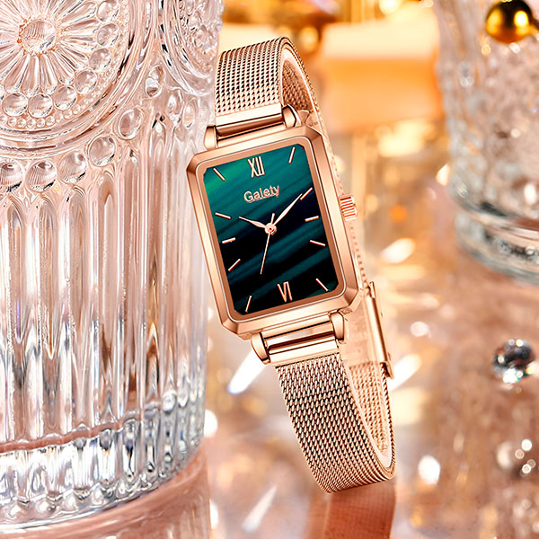 Tieto hodinky majú lesklú ružovo-zlatú farbu a krásny zelený ciferník. Dodajú štýl každým šatám, džínsom alebo formálnemu oblečeniu.